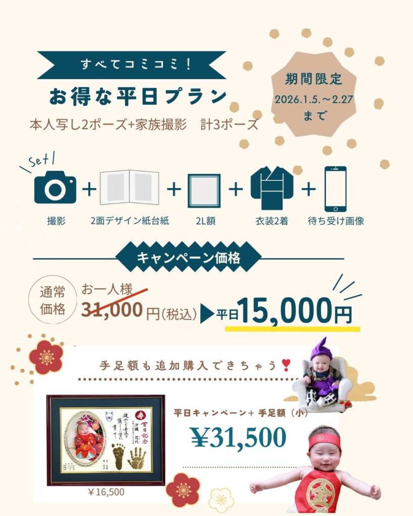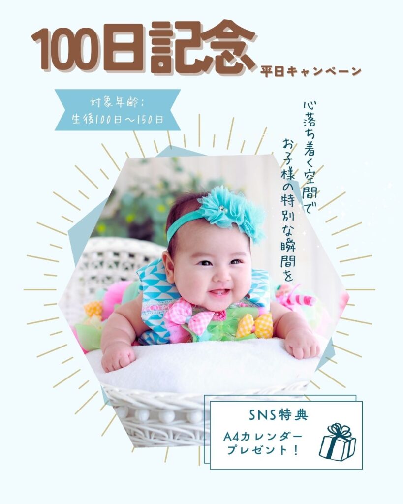 ⛄百日記念 平日キャンペーン⛄ 沖縄県うるま市石川にある子ども写真館フォトスタジオスウィート