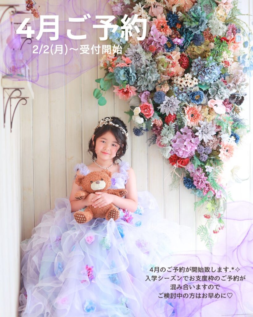 ✨4月ご予約開始のご案内✨                                                                            沖縄県うるま市石川にある子ども写真館フォトスタジオスウィート