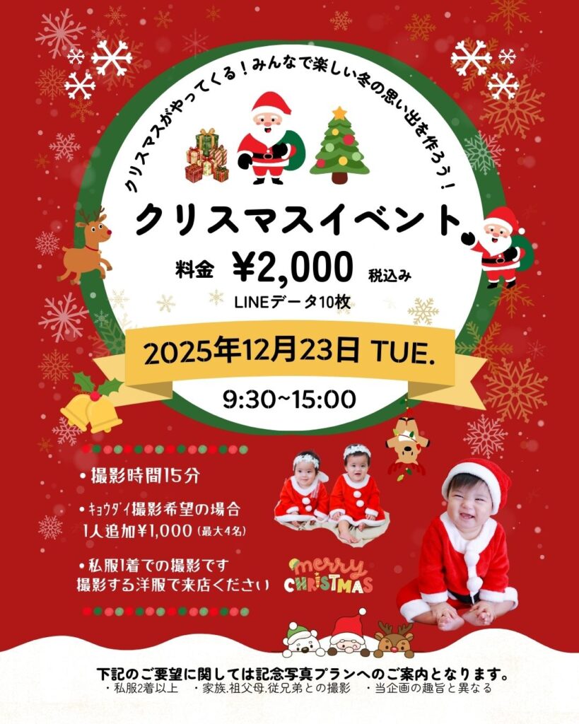 🎄2025クリスマスイベント🎄                                                          沖縄県うるま市石川にある子ども写真館フォトスタジオスウィート