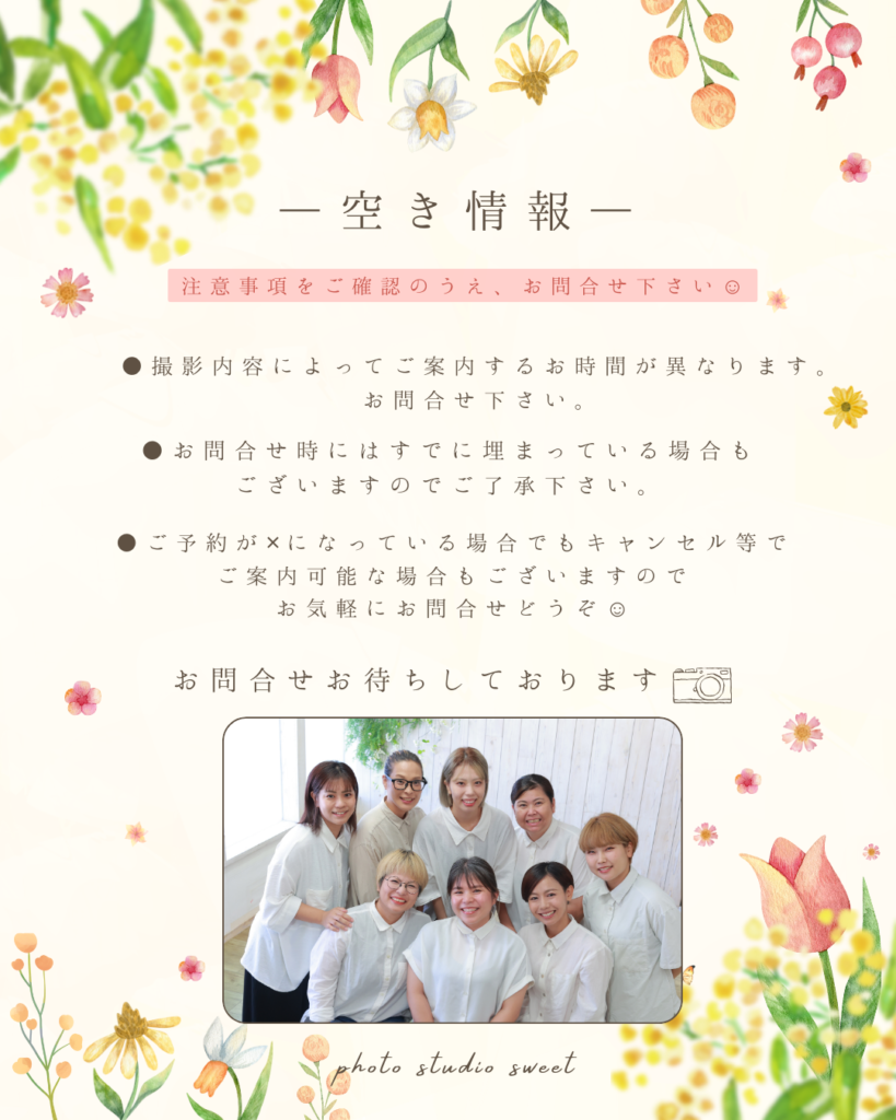 撮影内容によってはご案内出来ない可能性もございますのでご相談ください🧸❤️
